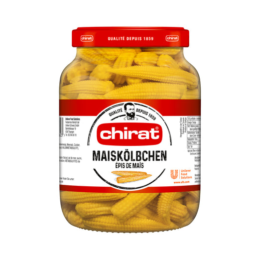 Ingrédients: 61% épis de maïs, vinaigre d'alcool, sel de mer, sucre, agents conservateurs (benzoate de sodium, MÉTABISULFITES de potassium), extrait de curcuma. Végétalien.