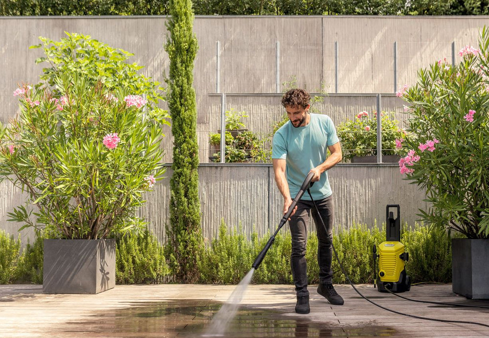 Le K 4 WCM Premium est équipé d'un puissant moteur refroidi par eau, qui se distingue par sa longue durée de vie. Doté d'un flexible haute pression de 6 mètres, ce nettoyeur haute pression est conçu pour un usage occasionnel et un nettoyage des salissures moyennement importantes. Grâce à la lance Vario Power (VPS) et à la rotabuse, vous pouvez nettoyer terrasses, meubles de jardin et voitures selon vos besoins. La pression de l'eau s'ajuste précisément à la zone à nettoyer par simple rotation de la VPS. La rotabuse, avec son jet rotatif précis, garantit un nettoyage impeccable, même sur les salissures tenaces. Grâce à l'enrouleur de tuyau intégré, le rangement du flexible haute pression est un jeu d'enfant, et tous les autres accessoires fournis trouvent également leur place directement sur l'appareil. Un filtre à eau intégré protège efficacement la pompe des particules de saleté.