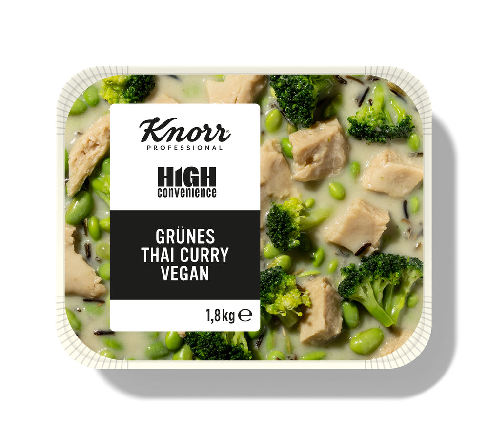 Curry vert avec émincé végétalien à base de soja, légumes, riz sauvage et lait de coco, surgelé
