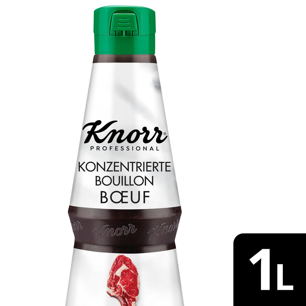 Ingrédients: 62% bouillon de bœuf concentré (eau, extrait de viande de bœuf), sel comestible, arôme, extrait de levure, 1% graisse de bœuf, jus d'oignons concentré, amidon modifié, acidifiant (acide citrique), épaississant (gomme xanthan), ail, huile de tournesol, antioxydant² (extraits de romarin). ²Pas de déclaration de l'additif dans le menu nécessaire car il n'existe pas de fonction technologique dans le produit cuit.
