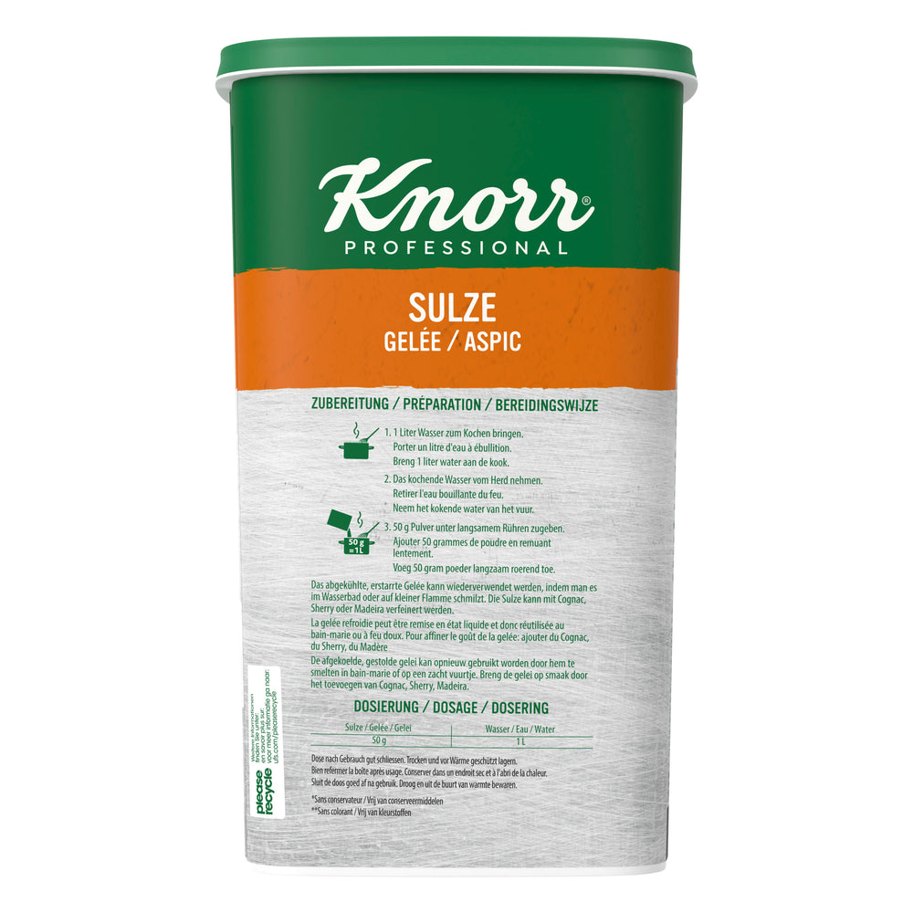 PRÉPARATION 1) Porter un litre d'eau à ébullition. 2) Retirer l'eau bouillante du feu. 3) Ajouter 50 grammes de poudre en remuant lentement. La gelée refroidie peut être remise en état liquide et donc réutilisée au bain-marie ou à feu doux. Pour affiner le goût de la gelée: ajouter du Cognac, du Sherry, du Madère.