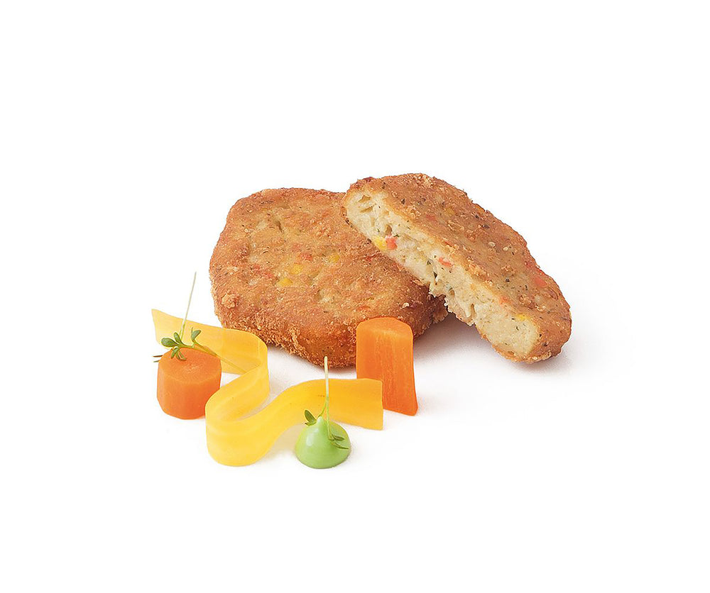 Karotten-Hirse-Medaillons, Laibchen mit feiner Käsenote, vorgebacken und tiefgekühlt