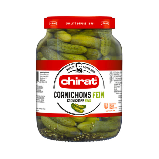 Zutaten: 60% Cornichons (enthält SULFIT), Branntweinessig, Speisesalz, Zucker, Estragon, Gewürze (enthält SENFKÖRNER), Zwiebel, Geschmacksverstärker (Mononatriumglutamat), Curcumaextrakt, Konservierungsstoff (KALIUMMETABISULFIT). Vegetabil.