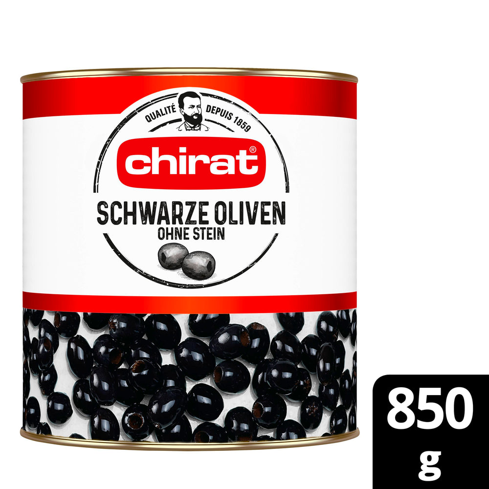 Schwarze Oliven ohne Stein, sterilisiert. Vegetabil.