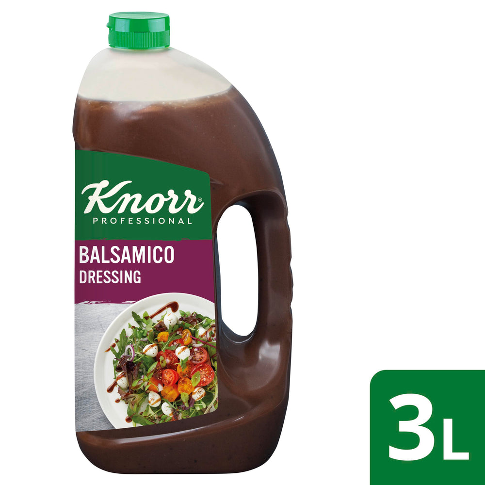 Zutaten: Trinkwasser, 32% Rapsöl, 16% Aceto Balsamico di Modena (g.g.A.), Zucker, Speisesalz, 1% Olivenöl extra, Gewürze, Farbstoff (Zuckerkulör), modifizierte Stärke, Verdickungsmittel (Xanthan, Carrageen), Kräuter (Oregano, Petersilie), Hefeextrakt.