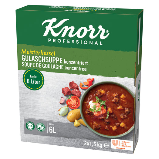 Zubereitung: 1. Beutel öffnen, Inhalt in Kochtopf geben. Mit 1,5 l Wasser vermischen. 2. Gulaschsuppe unter ständigem Rühren kurz aufkochen.