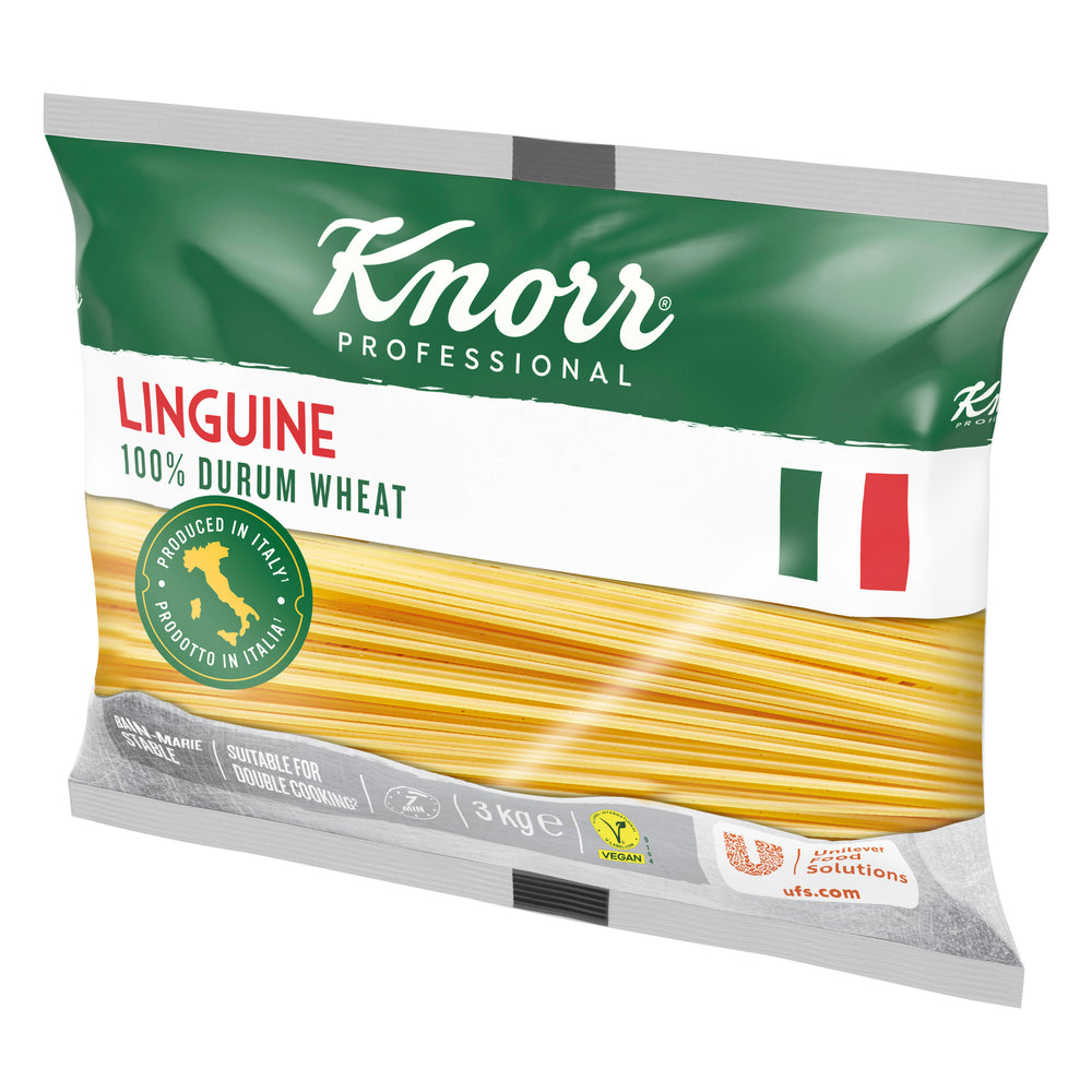 Zubereitung: Traditionell: Die Nudeln in einen Topf mit leicht gesalzenem, kochendem Wasser geben (1kg Nudeln in 10l Wasser). 7 Min. kochen oder bis die Nudeln al dente sind. Regelmäßig umrühren. Die Nudeln abgießen und servieren. Doppelkochen: Die Nudeln 5 Min. in leicht gesalzenem Wasser kochen. Die Nudeln abgießen, mit kaltem Wasser abspülen und mit 20g Öl vermischen. Im Kühlschrank mindestens 2 Std. lagern. Die Nudeln 40 Sek. in kochendem Wasser oder 2 Min. im Kombidämpfer bei 100 C erhitzen.