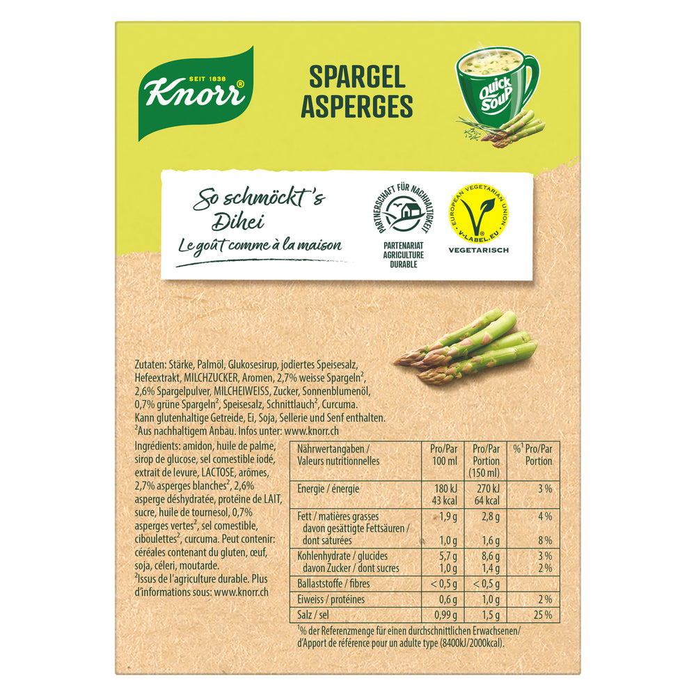 - Die KNORR Quick Soup Spargel Suppe 3 x 1 Tasse ist die perfekte Suppe, wenn es mal schnell gehen muss