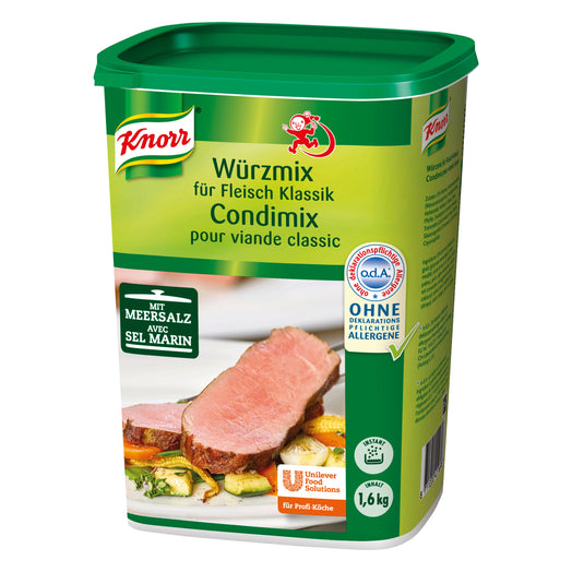 Zutaten: 50% Meersalz, Geschmacksverstärker (Mononatriumglutamat), modifizierte Stärke, Hefeextrakt, Knoblauch, Paprika, Palmöl, Pfeffer, Zwiebelpulver, Koriander, Speisesalz, Trennmittel (Calciumsilicat), Kerbel, Petersilie, Säuerungsmittel (Citronensäure), Dill, Estragon, Cayennepfeffer. ¹o.d.A.: Die Rezeptur enthält keine deklarationspflichtigen Zutaten mit allergenem Potential gemäss der Verordnung EU Nr. 1169/2011 (Anhang II) und CH-Lebensmittelinformationsverordnung (Anhang 6, LIV).