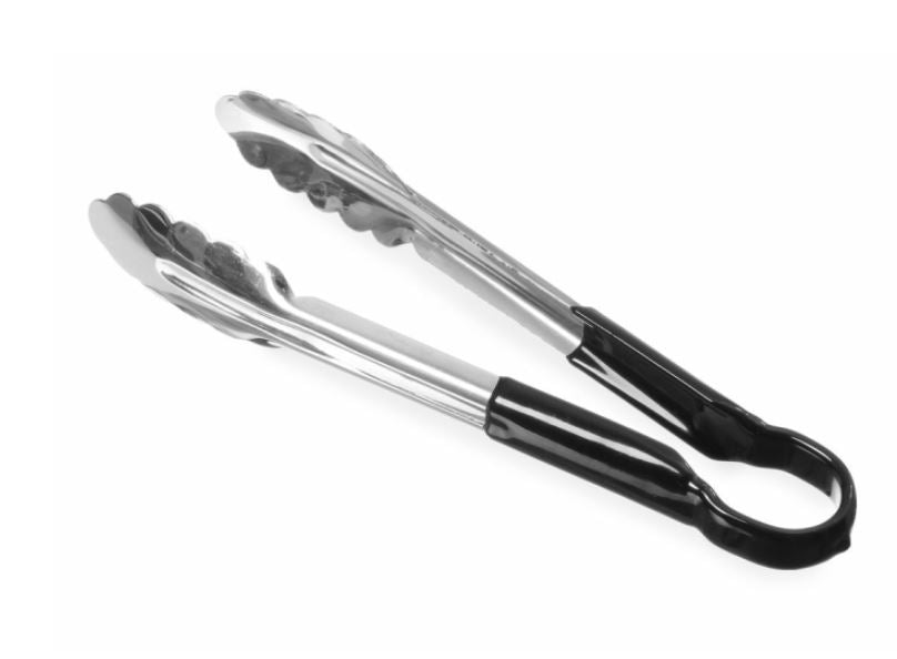 Die Servierzange mit schwarzen beschichtetem Griff aus Edelstahl liegt angenehm in der Hand und eignet sich zum Servieren von verschiedenen Speisen.